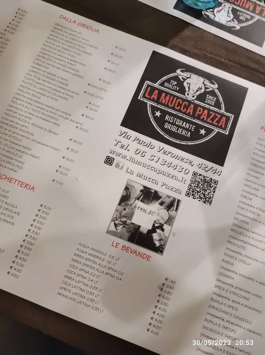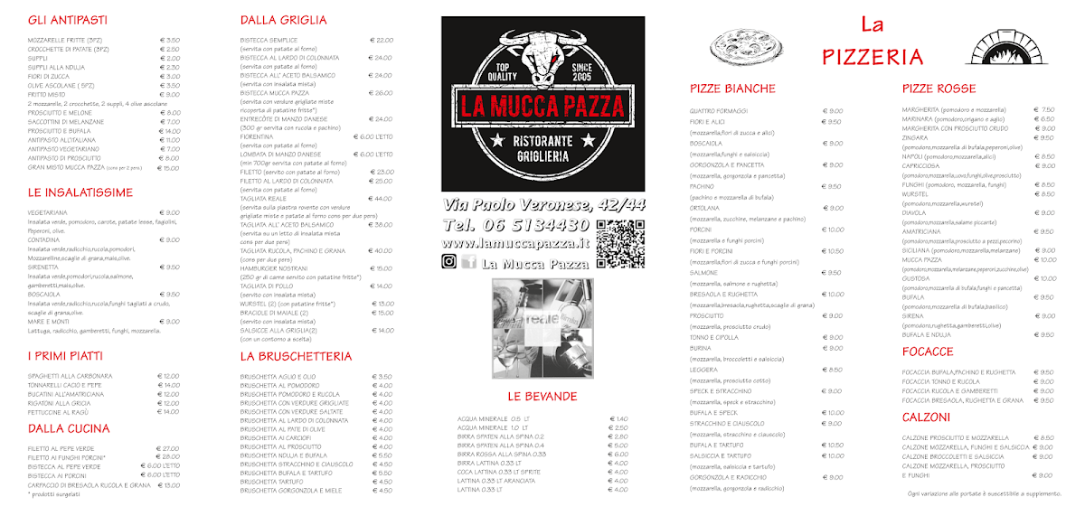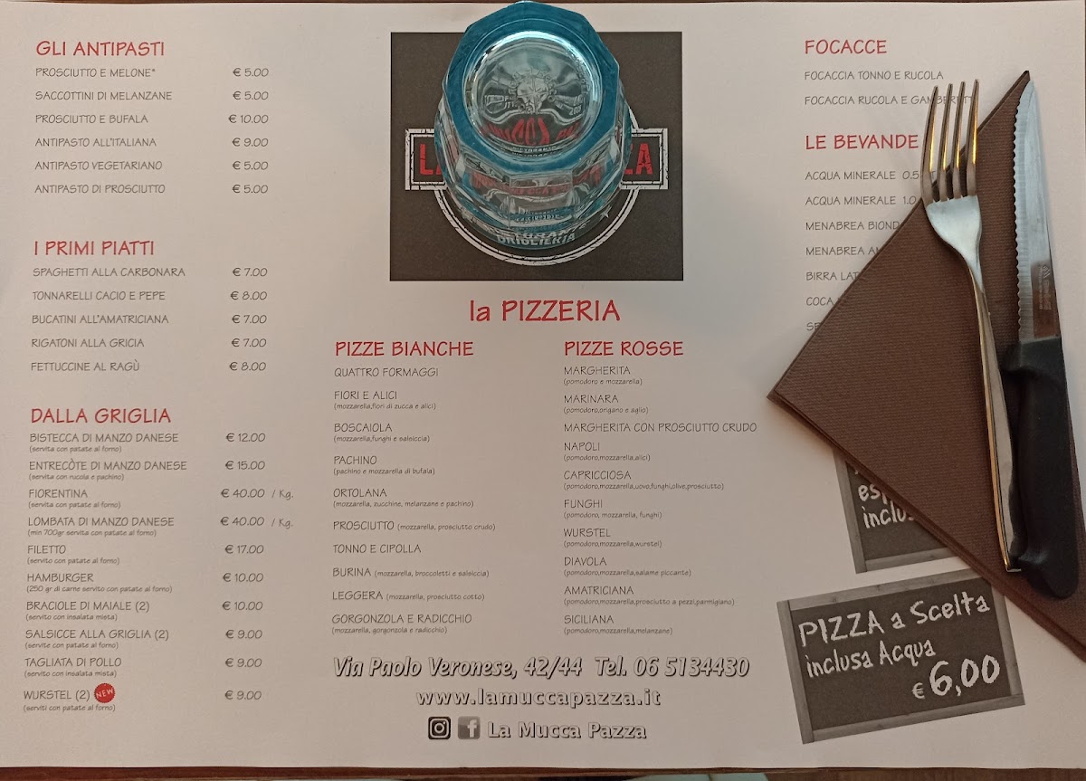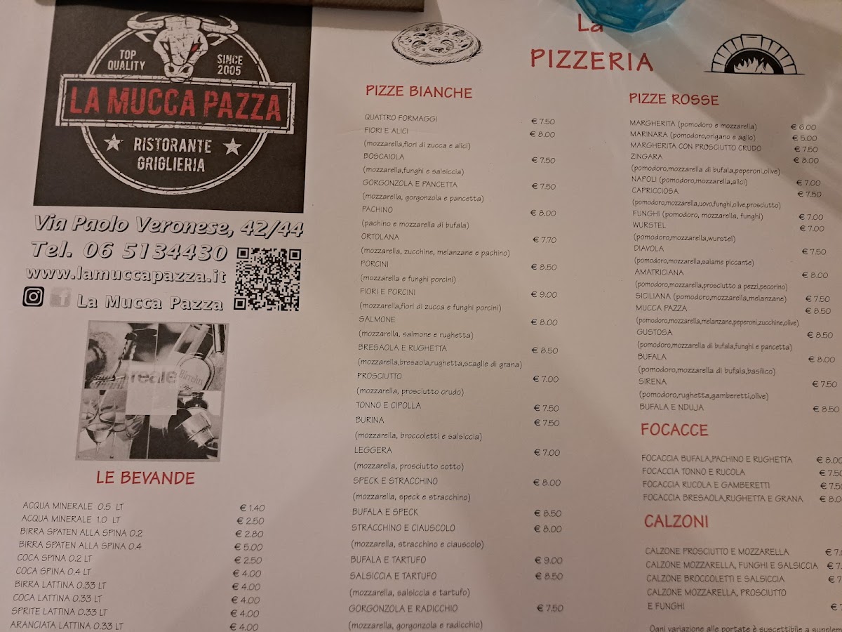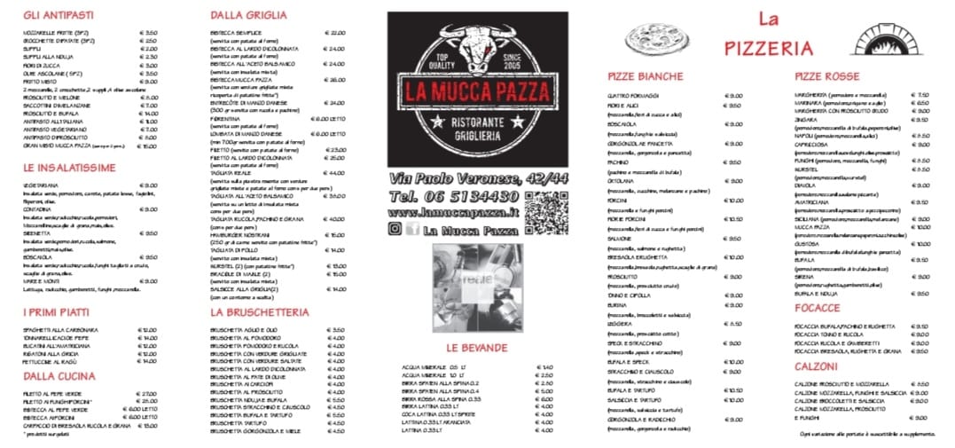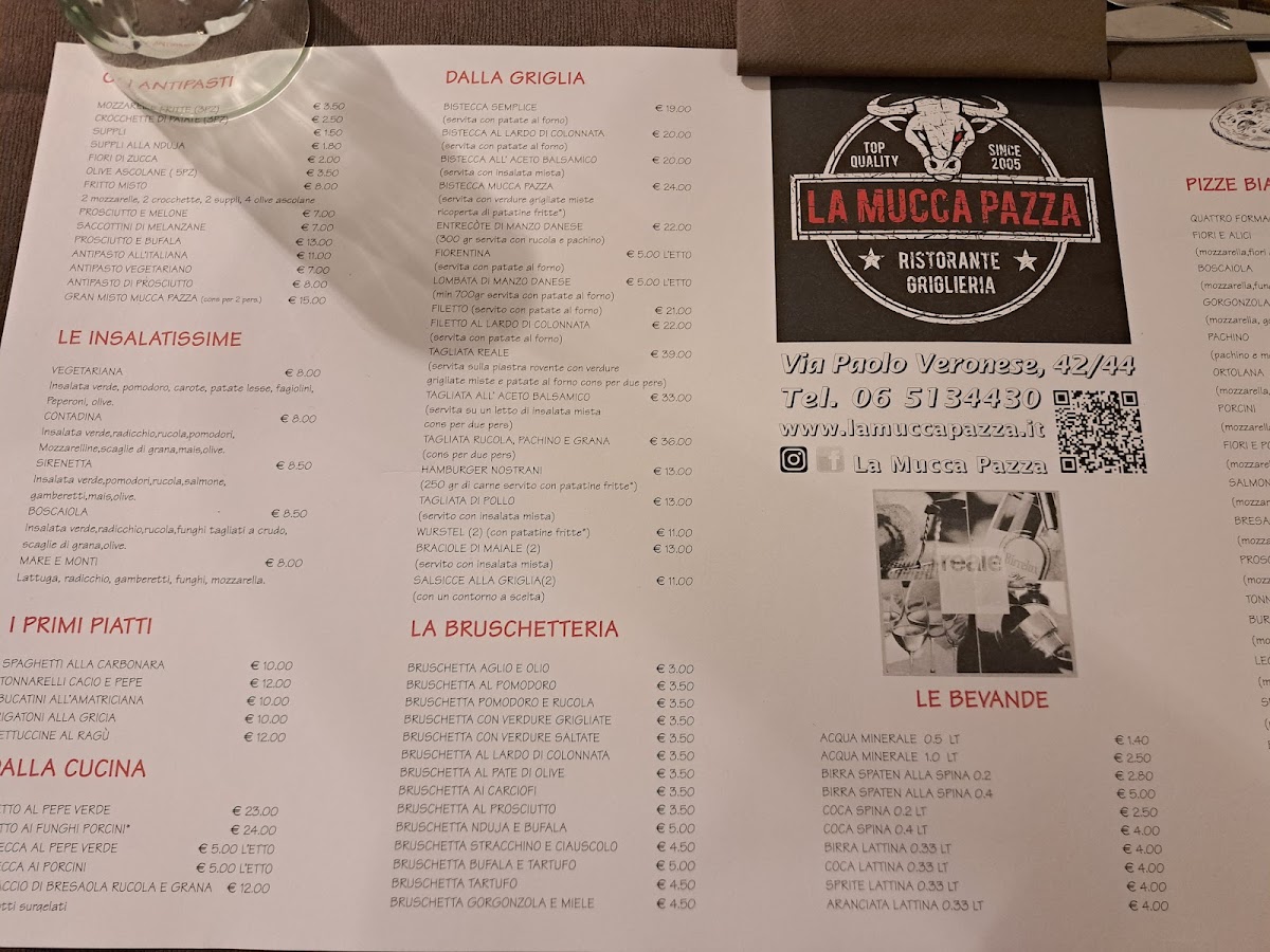La Mucca Pazza offers an authentic Italian dining experience right in the heart of Rome on Via Paolo Veronese. This chophouse and pizza restaurant delivers a menu rich with classic Italian flavors, featuring standout dishes like Spaghetti Carbonara, Pizza Quattro Formaggi, fresh gnocchi, and traditional Amatriciana. The wide selection ranges from hearty pasta and wood-fired pizzas to flavorful salads and succulent meats, appealing to both quick bites and leisurely meals.